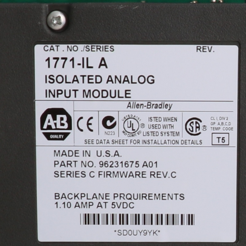 The 1771-IL is an analog input module with Eight fully isolated differential input channels. This module belongs to the legacy Programmable Logic Controller (PLC) platform. This module is compatible for use with instruments that provides voltage and current signals. Specifically, signal range supported by this controller are 1 to 5V dc, 0 to 5V dc, -5 to +5V, -10 to +10V dc, 0 to 10V dc, for Voltage and 4 to 20mA, 0 to 20mA, and -20 to +20mA for Current signals.