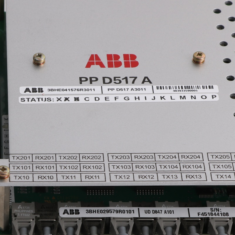 The ABB 3BHE041576R3011 PPD517 A3011 Converter Controller is a specialized module designed for precise control of converters within ABB’s industrial drive and automation systems. This controller is primarily used to manage the operational parameters of AC and DC drives, optimizing performance and ensuring efficient energy conversion in variable speed drives. With advanced control algorithms, the PPD517 A3011 delivers high responsiveness and accuracy, making it ideal for applications that demand stable and precise drive control. This module is a vital component for industrial automation systems, especially in applications where precise motor speed and torque control are critical.
