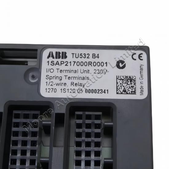The ABB TU532-XC 1SAP417000R0001 I/O terminal unit is designed for seamless integration in automation systems, specifically for use with 230 VAC and relay modules. |