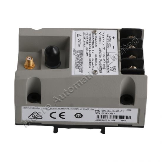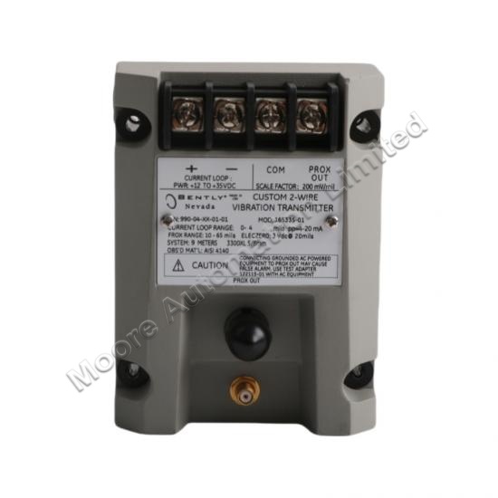 The Bentley Nevada 990-04-XX-01-01 MOD:165335-01 Vibration Transmitter is designed for continuous vibration monitoring in rotating machinery. It converts proximity probe signals into a proportional 4–20 mA current output, enabling seamless integration with plant monitoring and control systems.