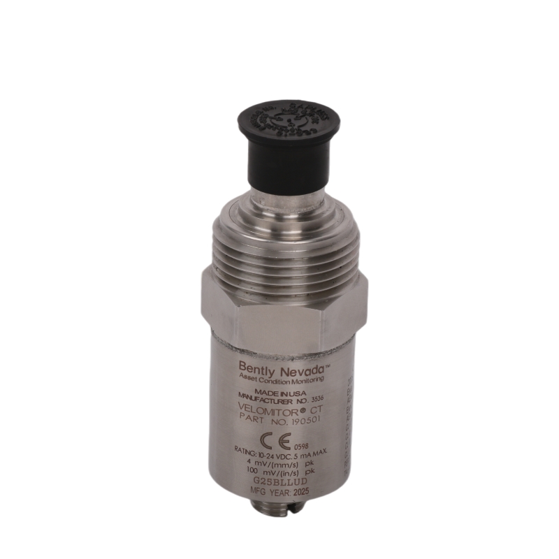 The Bently Nevada 190501-07-00-01 Velomitor CT Velocity Transducer is a low-frequency velocity sensor designed for industrial automation and process control applications.