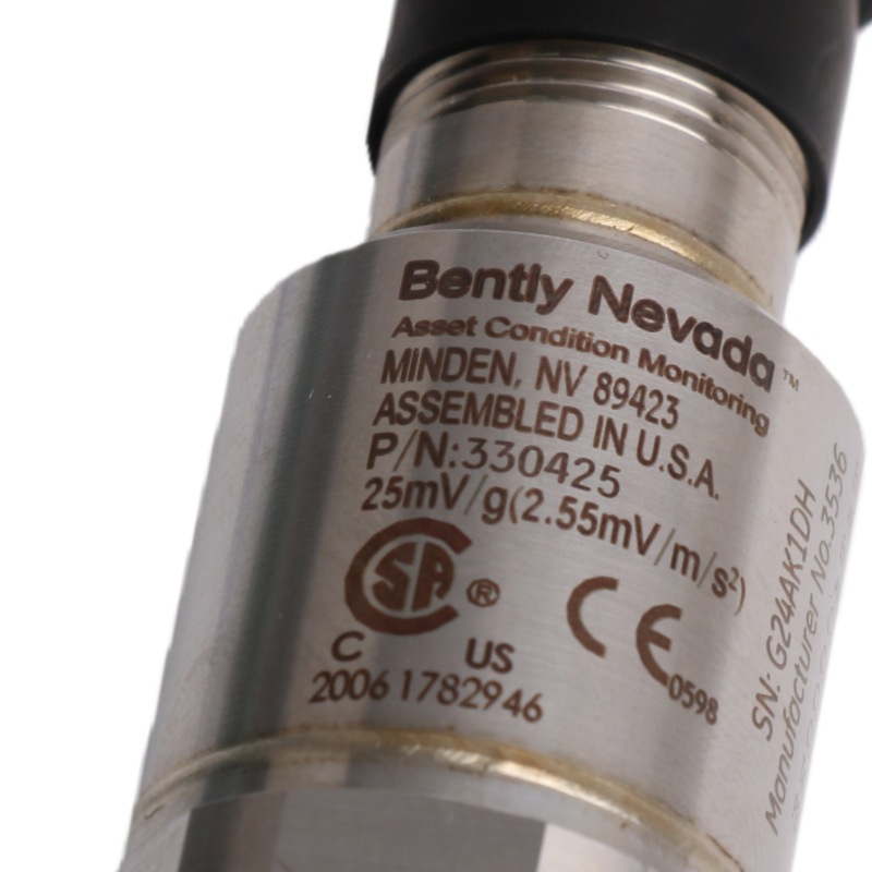 The Bently Nevada 330425-02-05 Accelerometer is designed to address the requirements of American Petroleum Institute Standard 670 for accelerometers. It provides an amplitude range of 75 g peak and a sensitivity of 25 mV/g.