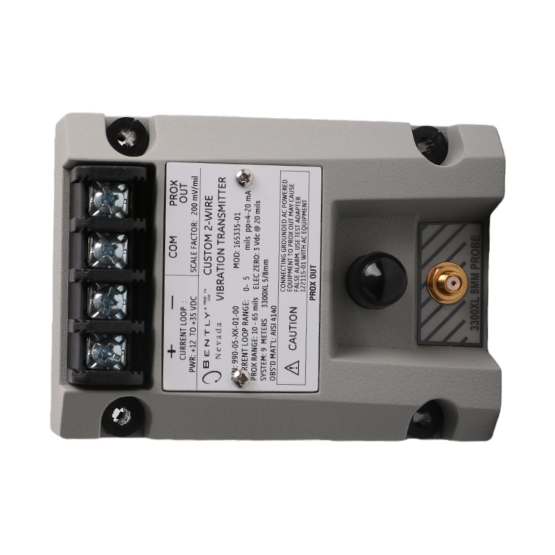 The Bently Nevada 990-05-XX-01-00 MOD:167577-07 Vibration Transmitter is a high-performance transmitter designed to convert signals from proximity probes into useful output for monitoring the condition of rotating machinery. This transmitter is typically used in condition monitoring systems where precise vibration and displacement data is required. It supports a wide frequency range, from 5 Hz to 6,000 Hz, ensuring accurate measurement of both low and high-frequency vibrations. The 990-05-XX-01-00 transmitter features a 7.87 mV/µm (200 mV/mil) incremental scale factor for precise measurements, and its robust design ensures reliable operation in harsh environments with extreme temperatures and high humidity. The transmitter is ideal for applications where continuous monitoring of machinery performance is critical for preventing unexpected downtime and optimizing maintenance schedules.