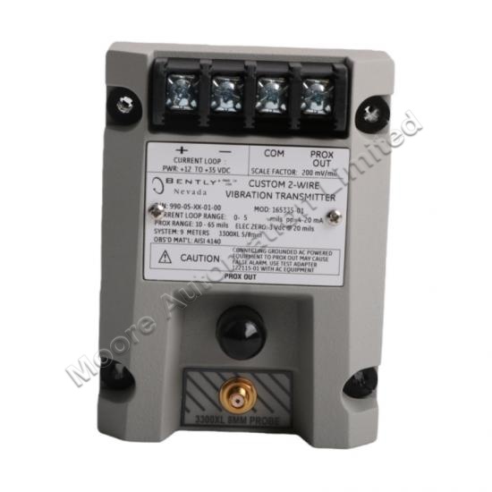 The Bently Nevada 990-05-XX-01-00 MOD:167577-07 Vibration Transmitter is designed to convert signals from proximity probes into useful output for monitoring the condition of rotating machinery.This transmitter is typically used in condition monitoring systems where precise vibration and displacement data is required.