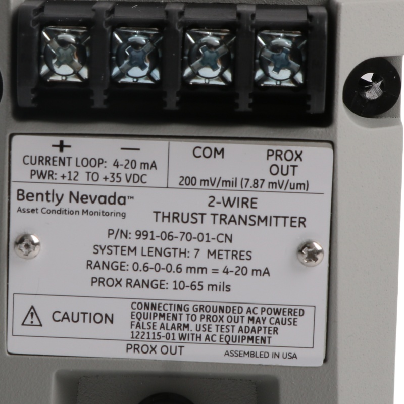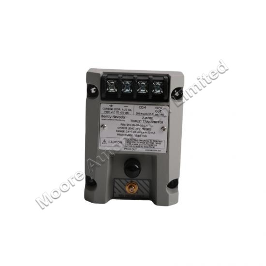 The Bently Nevada 991-06-70-01-CN Vibration Transmitter is a high-performance industrial sensor designed to provide precise and reliable vibration measurements for critical rotating equipment in various industrial applications. This transmitter converts mechanical vibration into an electrical signal for monitoring purposes. Ideal for use in predictive maintenance programs, it enables operators to detect early signs of mechanical failure, reducing downtime and optimizing operational efficiency.Manufactured by Bently Nevada, a global leader in vibration monitoring technology, this model offers a robust and versatile solution for vibration monitoring in hazardous and challenging environments. Its design integrates seamlessly with DIN rail systems, providing easy installation and system integration. With a full-scale range of 0-5 mils peak-to-peak (pp), the 991-06-70-01-CN ensures accurate vibration readings over a wide range of machinery operating conditions.