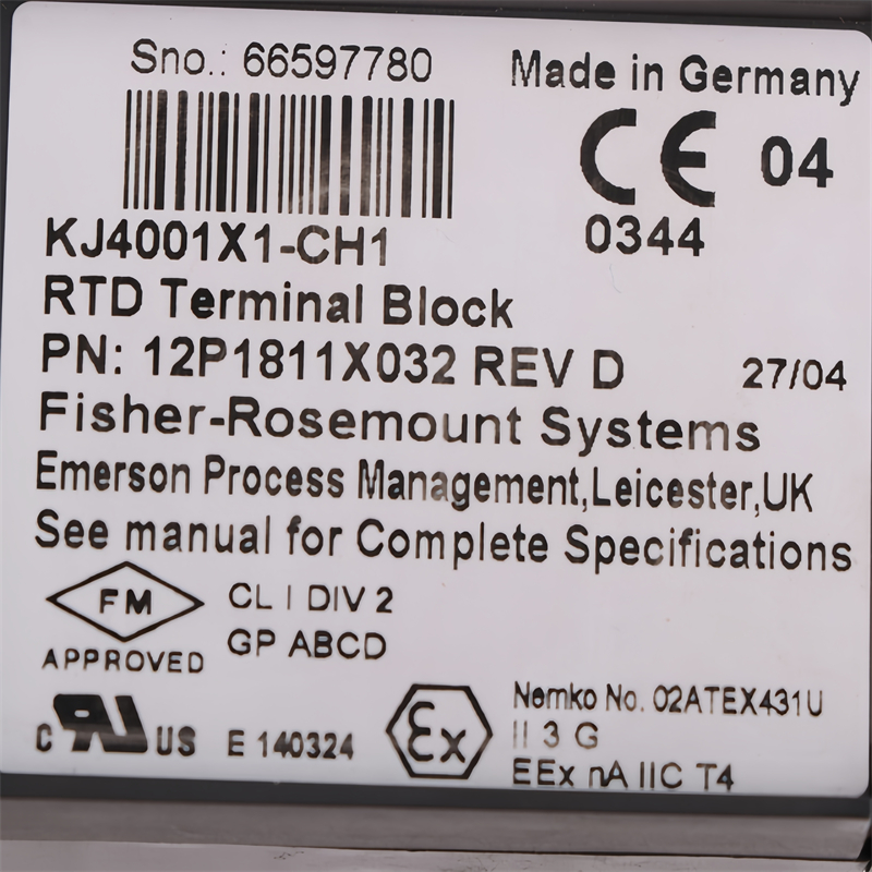The EMERSON KJ4001X1-CH1 12P1811X032 RTD Terminal Block is a specialized terminal block designed for Resistance Temperature Detector (RTD) connections in industrial automation systems. It ensures precise signal transmission and secure wiring for temperature measurement devices. Compact and lightweight, it is built with high-quality materials to withstand demanding industrial environments. This terminal block integrates seamlessly with Emerson control systems, offering reliable and accurate performance for temperature-sensitive applications.