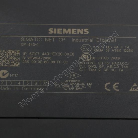 The Siemens 6GK7443-1EX20-0XE0, known as the CP 443-1, is a communications processor designed to connect the SIMATIC S7-400 PLC to industrial Ethernet networks. |